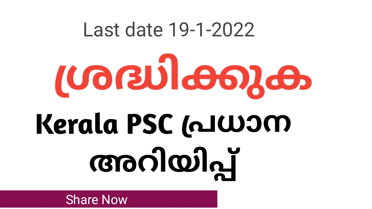 Kerala PSC Notification Last date 19-1-2022 - Jobs